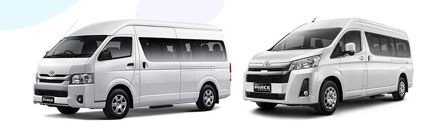 - Hiace Commuter (15 seat) — Value terbaik untuk city tour & kunjungan singkat.